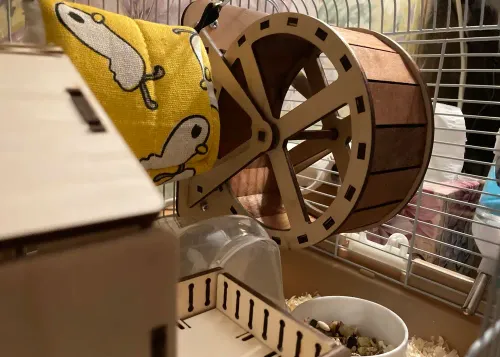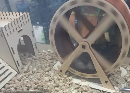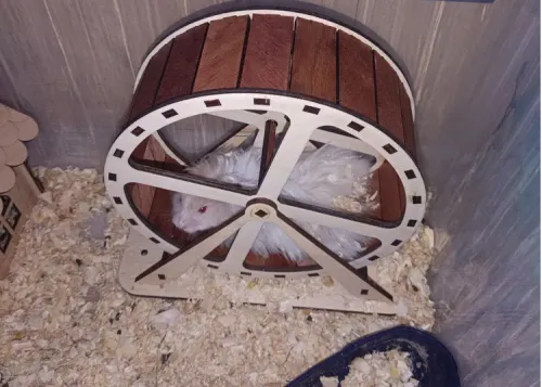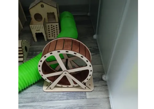 Все супер. Безшумное колесо .Устойчивое . Хомячку очень понравилось . Он от туда не выходит спит и бегает . А за подарок огромное срасибо