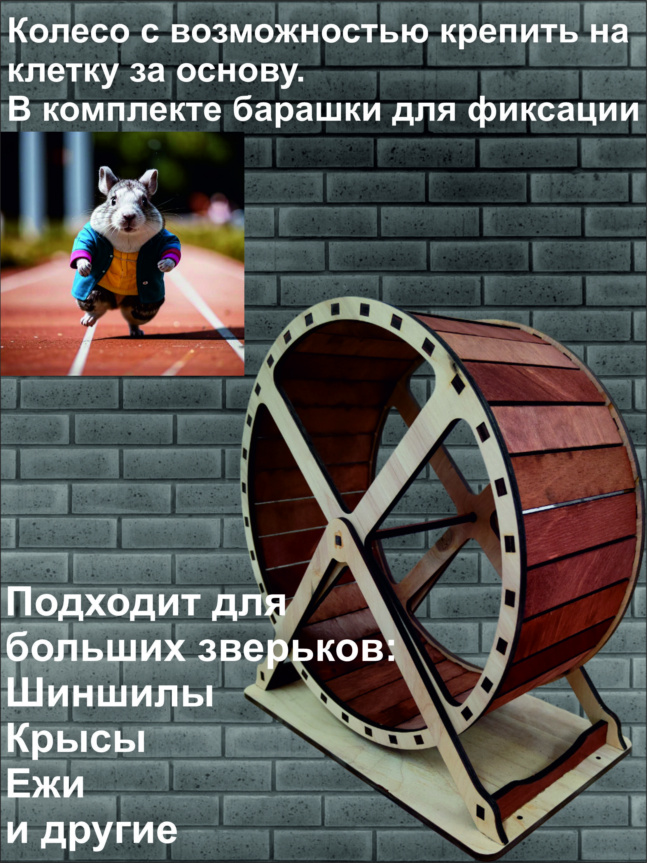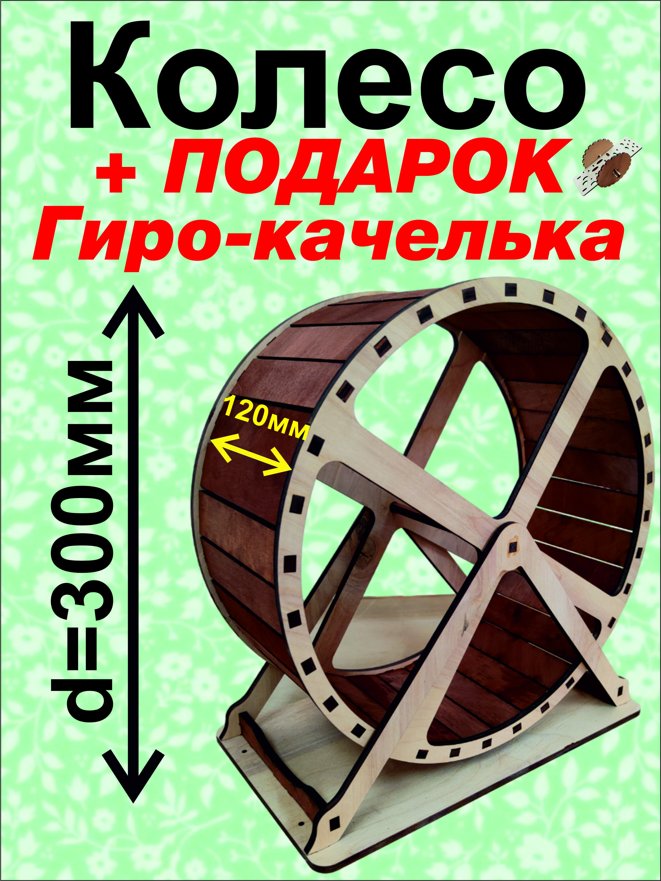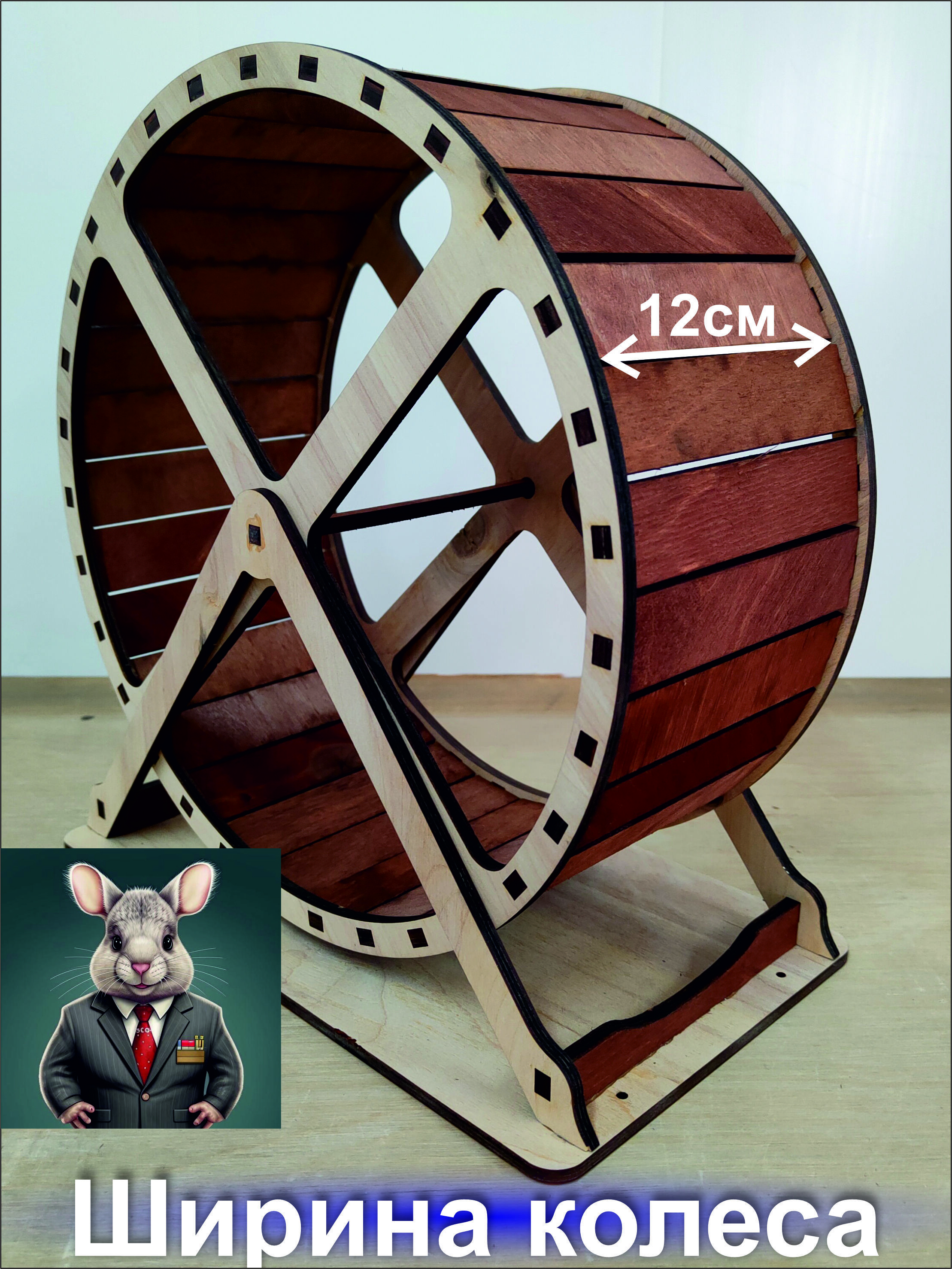 Большое деревянное беговое колесо для крупных грызунов (диаметр 300 мм, ширина 120 мм) – идеальное решение для активных питомцев!